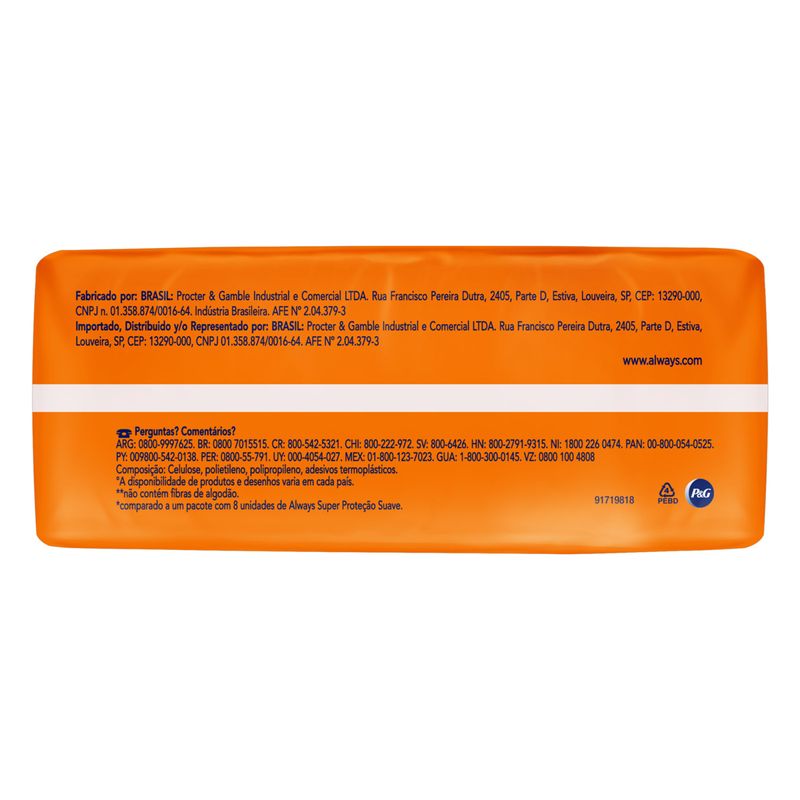 O absorvente Always Cobertura Suave com Abas Dia Super Proteção é a solução perfeita para quem busca um produto que una conforto, segurança e praticidade. Com sua tecnologia avançada e design pensado para o dia a dia, ele se torna um aliado indispensável durante o período menstrual. Sinta-se livre e confiante com Always!