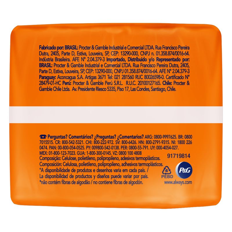 A marca Always é reconhecida por seu compromisso com a qualidade e inovação em produtos de higiene íntima. Com anos de experiência no mercado, a Always se dedica a oferecer soluções que atendam às necessidades das mulheres, proporcionando produtos que aliam conforto, segurança e praticidade.