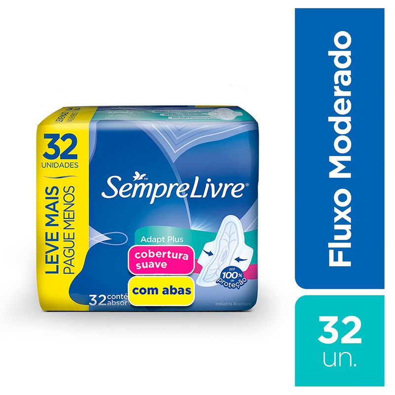 Com 32 unidades por embalagem, o Sempre Livre Adapt Plus é uma opção prática e econômica para o seu dia a dia. Ideal para quem busca um produto que una qualidade e quantidade, ele é perfeito para ser utilizado em casa ou levado na bolsa para qualquer lugar. Assim, você pode estar sempre preparada, independentemente da rotina.