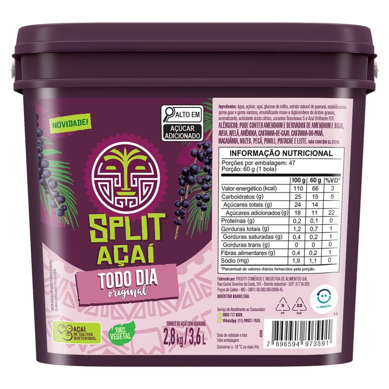 Acai Split Original Todo Dia 3,6L – Sabor e Frescor em Cada Colher