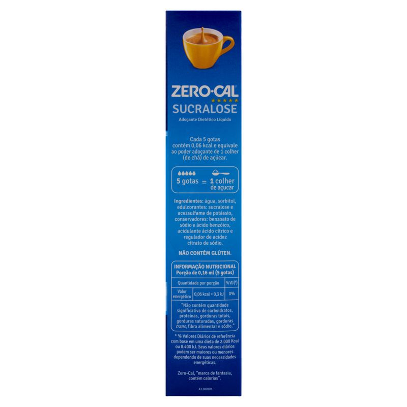 A marca Zero Cal é reconhecida por seu compromisso com a qualidade e a satisfação dos consumidores. O Adoçante Líquido Zero-Cal Sucralose é produzido com rigorosos padrões de qualidade, garantindo um produto seguro e confiável para o seu dia a dia. Ao escolher este adoçante, você opta por uma alternativa saudável e saborosa, que se encaixa perfeitamente em um estilo de vida equilibrado.