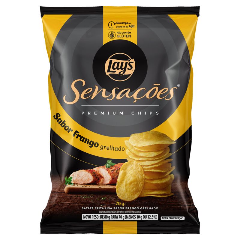 A Batata Frita Lisa Lays Sensações Premium sabor Frango Grelhado é uma experiência gastronômica sofisticada em forma de snack. Produzida com batatas cuidadosamente selecionadas e fritas no ponto exato, oferece crocância irresistível e sabor intenso.