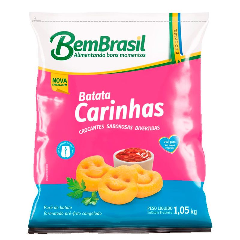 A Batata Carinhas Bem Brasil é diversão e sabor em cada mordida! Com formato lúdico e irresistível, é perfeita para alegrar as refeições das crianças e dos adultos também.