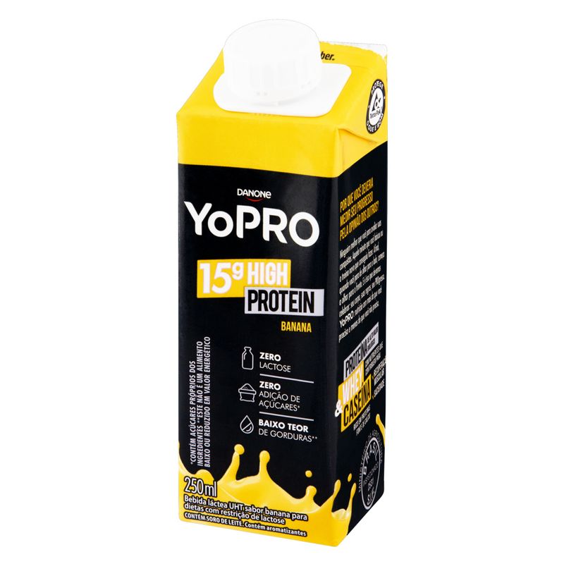 Bebida Láctea UHT Yopro 15g High Protein Zero Lactose Banana – Sabor e Nutrição em Cada Gole