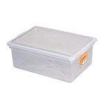 Com um design clean na cor branca, a Caixa Organizadora Pleion se adapta facilmente a qualquer decoração. Seu formato retangular otimiza o espaço, permitindo que você a encaixe em prateleiras, armários ou sob a cama. Além disso, a transparência do material facilita a visualização do conteúdo, tornando a busca por itens muito mais prática e rápida. A alça lateral proporciona um manuseio confortável, tornando o transporte da caixa simples e ágil.
