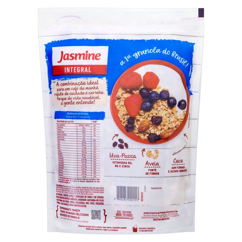 A Jasmine é uma marca reconhecida por seu compromisso com a qualidade e a saúde. Todos os produtos são elaborados com cuidado, visando oferecer opções que atendam às necessidades dos consumidores que buscam uma alimentação mais saudável. O Cereal Matinal Jasmine Granola Tradicional com Coco e Uvas-Passas é mais uma prova desse compromisso, garantindo que você tenha um produto saboroso e nutritivo à sua disposição.