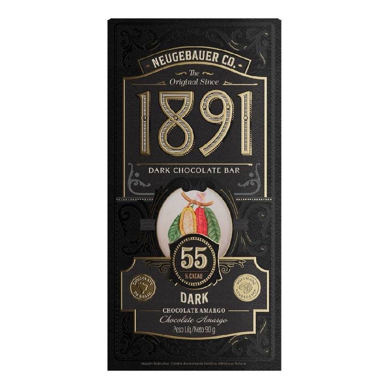 Choc Neugebauer 1891 90g Dark 55% Cacau – Sabor Intenso e Sofisticação em Cada Quadrado
