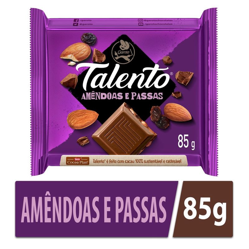 Chocolate ao Leite Garoto Talento com Amêndoas e Passas 85g – Uma Experiência de Sabor Inigualável