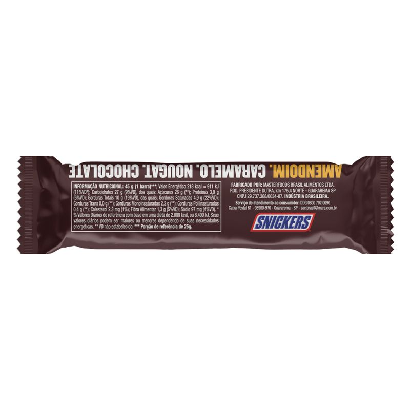 Cada barra de Snickers é cuidadosamente elaborada com ingredientes de qualidade. O amendoim crocante é envolto em um caramelo macio, tudo isso coberto por uma camada generosa de chocolate ao leite. Essa combinação não só proporciona um sabor marcante, mas também uma textura que faz com que cada mordida seja uma verdadeira explosão de sensações. É um produto que se destaca pela sua riqueza de sabores e pela satisfação que oferece.