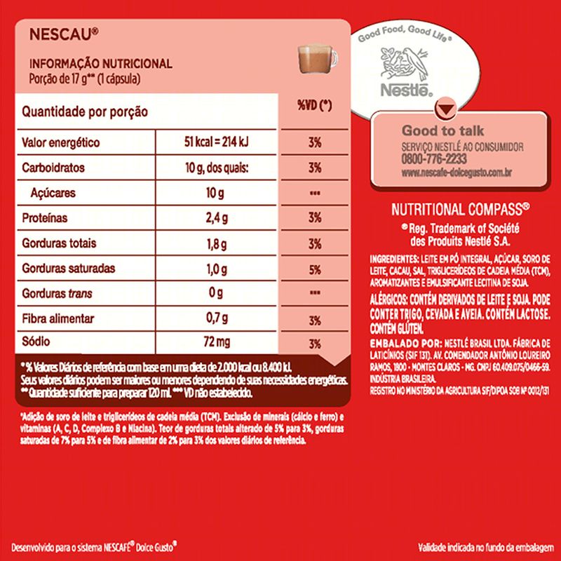A marca Nescafé é sinônimo de qualidade e tradição no Brasil. Com anos de experiência no mercado, a Nescafé se destaca por oferecer produtos que atendem às expectativas dos consumidores mais exigentes. O Composto Lácteo Em Cápsula Nescafé Dolce Gusto Nescau não é exceção, trazendo a qualidade que você já conhece e confia.