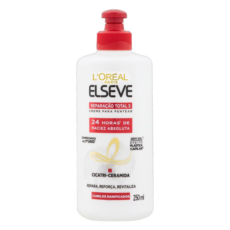 O Creme para Pentear Elseve Reparação Total 5 é a solução ideal para quem busca cabelos saudáveis e bem cuidados. Com uma fórmula desenvolvida para proporcionar hidratação profunda, este creme atua em cinco áreas essenciais: combate à quebra, redução de frizz, controle do volume, maciez e brilho. Ideal para todos os tipos de cabelo, ele ajuda a restaurar a vitalidade dos fios, deixando-os mais fortes e com aparência saudável.