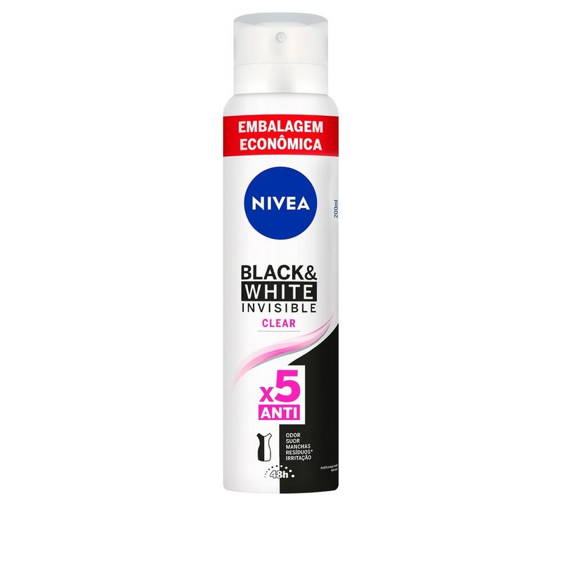 Com o Desodorante Aerossol Nivea Invisible For Black & White Clear, você garante não apenas proteção, mas também um cuidado especial para a sua pele, permitindo que você viva cada dia com confiança e frescor.