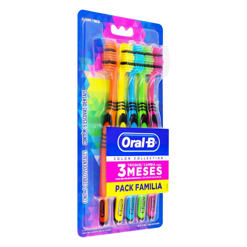 Com a Escova Dental Oral-B Color Collection Pack Com 5 Unid, você tem a praticidade de ter escovas sempre disponíveis, aliada à qualidade e tecnologia que a Oral-B oferece. Invista na sua saúde bucal e na da sua família com um produto que combina eficiência, conforto e um toque de cor na sua rotina de cuidados diários.