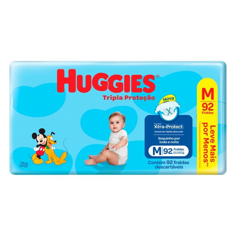 Fralda Descartável Huggies Hiper Tripla Proteção M com 92 Unid – Conforto e Proteção para Seu Bebê