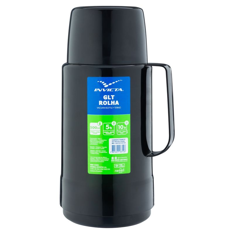 Garrafa Térmica Invicta GLT 500ml Preta – Praticidade e Estilo para o Seu Dia a Dia