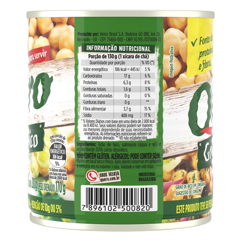 A marca Quero se destaca pela qualidade de seus produtos, e o Grão de Bico não é exceção. Envasado em lata, ele oferece a conveniência de estar pronto para o consumo, economizando tempo na cozinha. Basta abrir a lata e adicionar aos seus pratos favoritos. Essa praticidade é especialmente útil para quem tem uma rotina agitada, mas não abre mão de uma alimentação nutritiva.