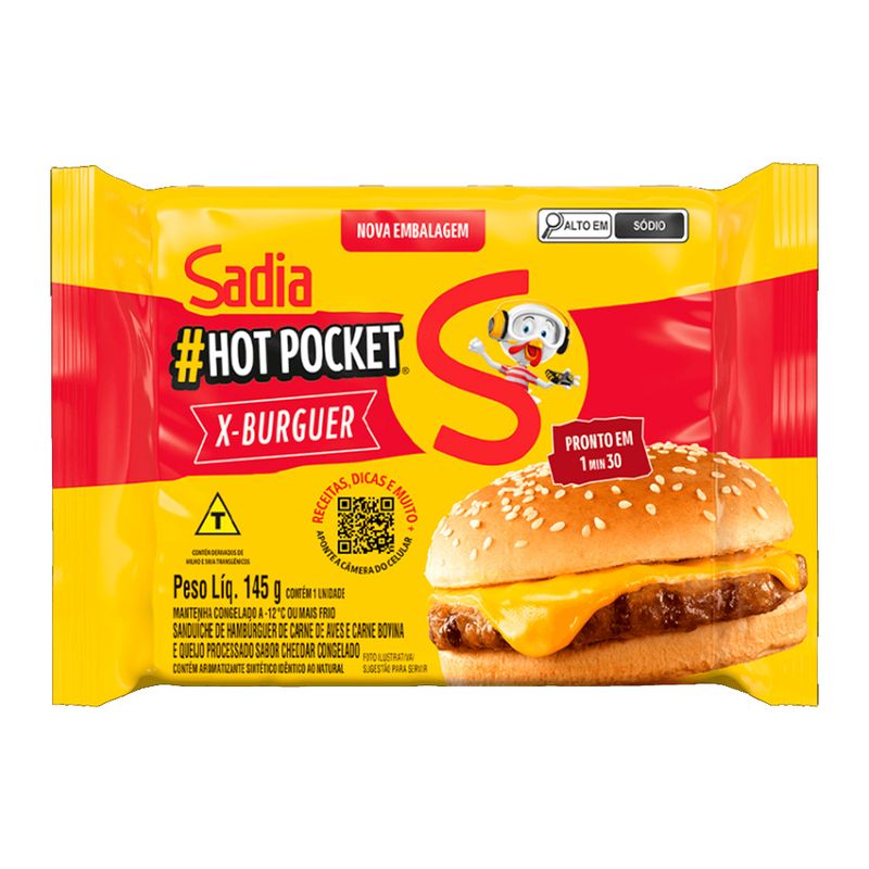 O Hot Pocket Sadia X-Burguer traz o sabor clássico do cheeseburger em uma refeição rápida e prática.