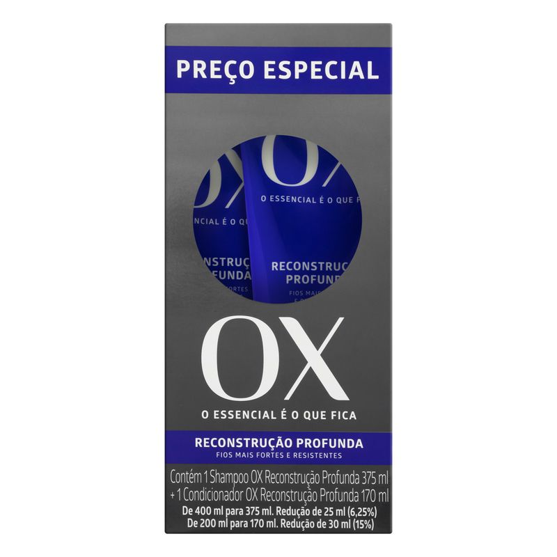 Kit Shampoo 375ml + Condicionador 170ml Ox Reconstrução Profunda – Cuidado Completo para Seus Fios