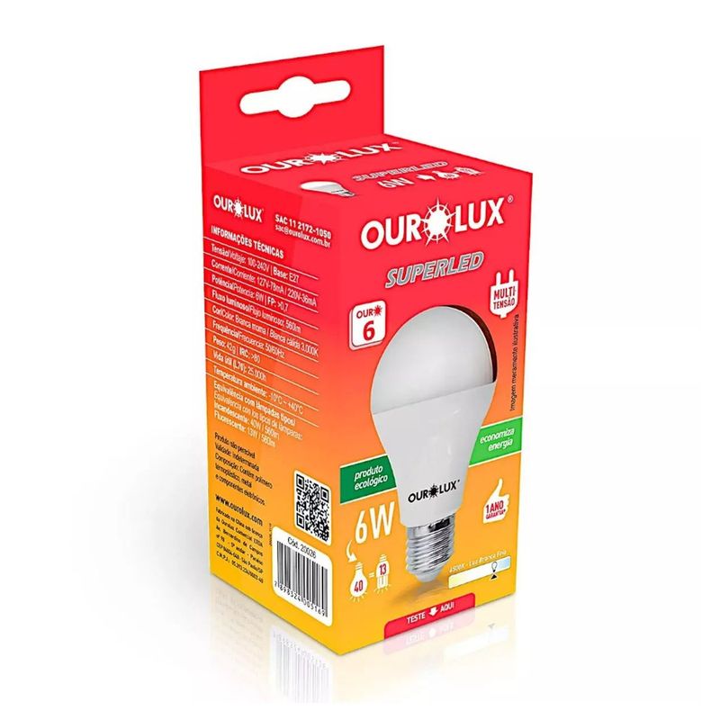 Lâmpada Ourolux Superled 6w 6500k Branca Bivolt – Iluminação Eficiente para Seu Lar