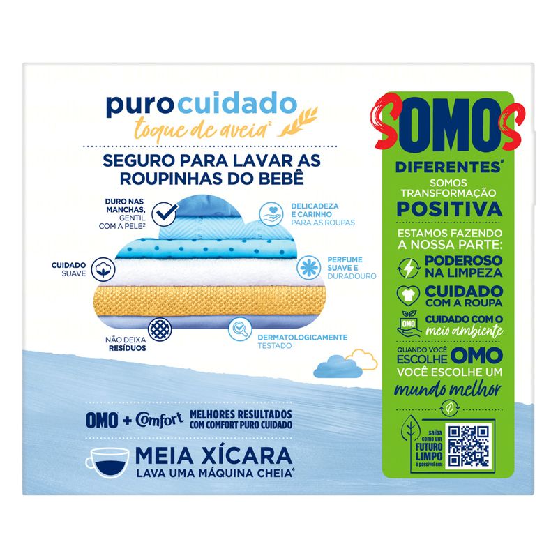 O Lava Roupas Em Pó Omo Puro Cuidado Toque De Aveia é um produto que reflete o compromisso da marca com a qualidade e a satisfação do consumidor. A Omo é reconhecida por sua tradição e inovação no mercado de produtos de limpeza, sempre buscando oferecer soluções que atendam às necessidades dos clientes. Com Omo, você pode confiar que suas roupas estarão sempre limpas, cuidadas e com um aroma irresistível.