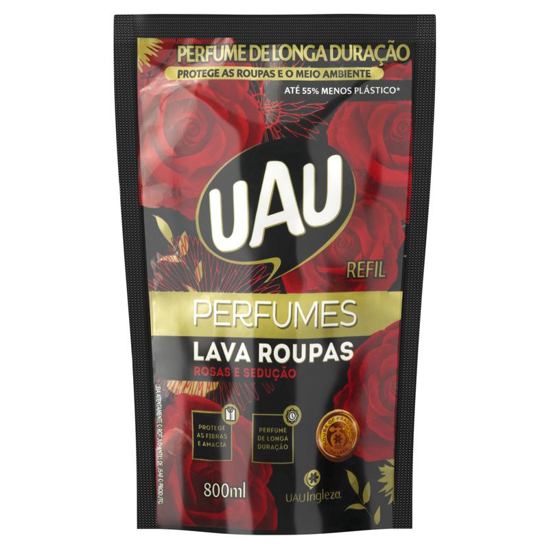 Lava-Roupas Líquido Rosas e Sedução Uau Perfumes Sachê 800ml Refil – Perfume e Cuidado para Suas Roupas