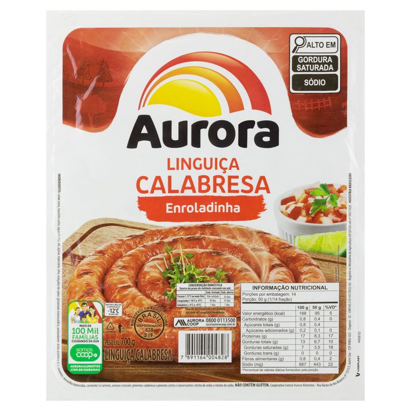 Linguiça Calab Aurora 700g Enroladinha – Sabor e Tradição em Cada Mordida