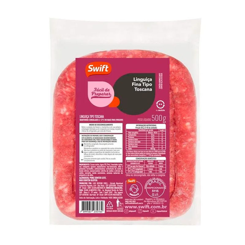 Linguiça Toscana Fina Swift 500g – Sabor e Tradição em Cada Mordida