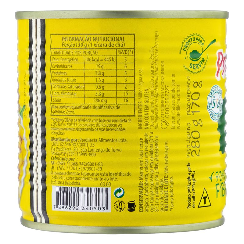 A marca Predilecta é reconhecida pela qualidade de seus produtos, e o milho verde em lata não é exceção. Cada lata é cuidadosamente envasada para preservar o frescor e o sabor do milho, garantindo que você tenha sempre um ingrediente de alta qualidade à disposição. Ideal para quem valoriza alimentos práticos, mas não abre mão de um bom gosto.