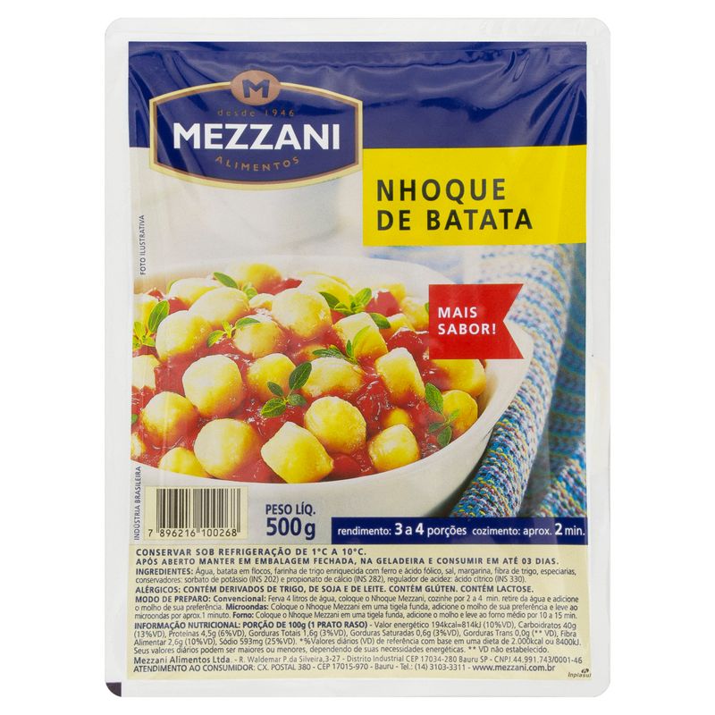 Produzido pela renomada marca Mezzani, o nhoque é elaborado com um cuidado especial, respeitando as receitas tradicionais. A massa é leve e fácil de cozinhar, permitindo que você prepare uma refeição saborosa em poucos minutos. Basta cozinhar em água fervente até que suba à superfície, e está pronto para ser servido com seu molho favorito ou até mesmo com um toque de azeite e queijo ralado.