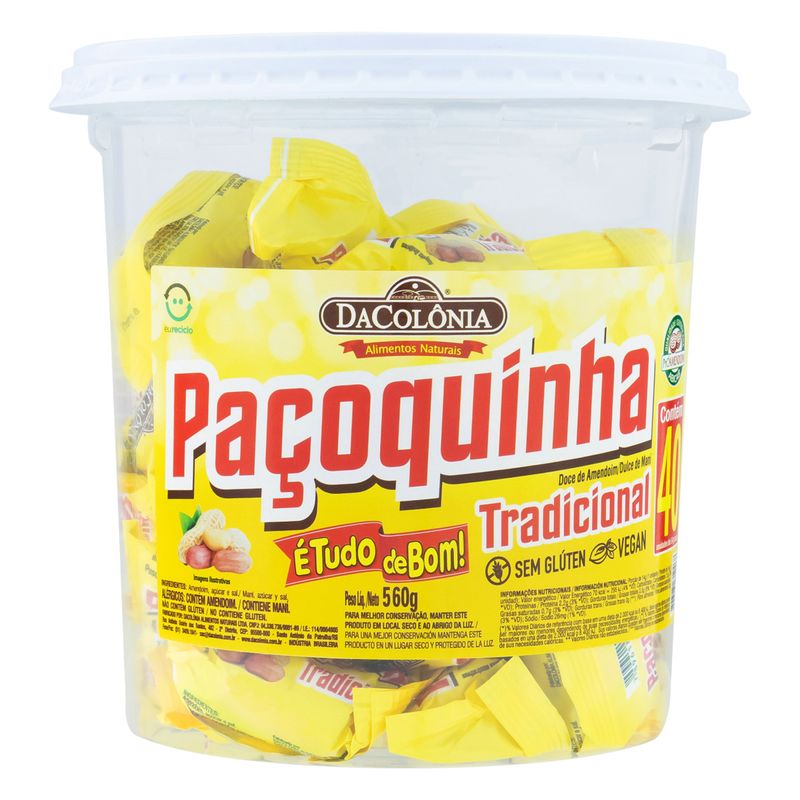 A Pacoquinha Dacolonia é um doce que traz a essência da tradição brasileira em cada embalagem. Com 560g de pura saborosa crocância, este produto é ideal para quem busca um lanche prático e saboroso, perfeito para qualquer hora do dia. Seja para acompanhar um café da manhã, um lanche da tarde ou até mesmo como um petisco durante um encontro com amigos, a pacoquinha é uma escolha que agrada a todos.