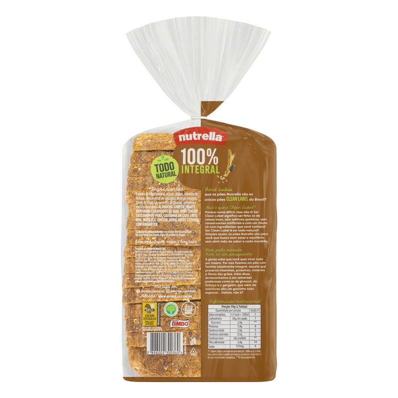 Pão Nutrella 100% Integral 450g – Sabor e Nutrição em Cada Fatia