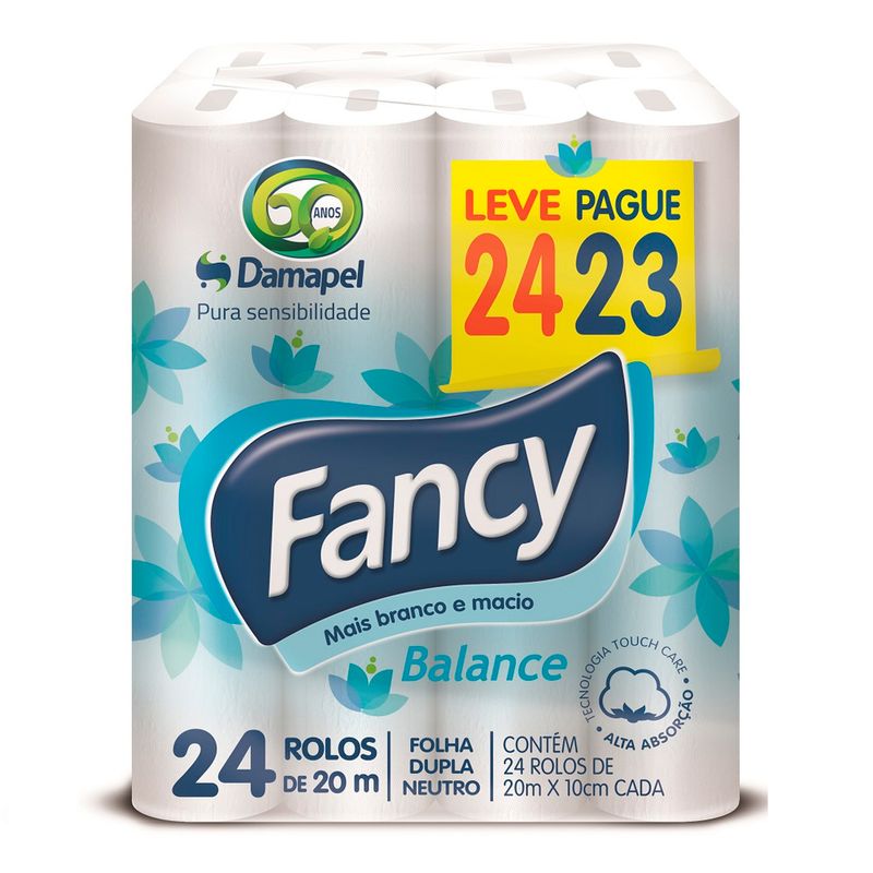 Papel Higiênico Folha Dupla Fancy Leve 24 Pegue 23 Rolos com 20 Metros – Conforto e Qualidade para o Seu Banheiro