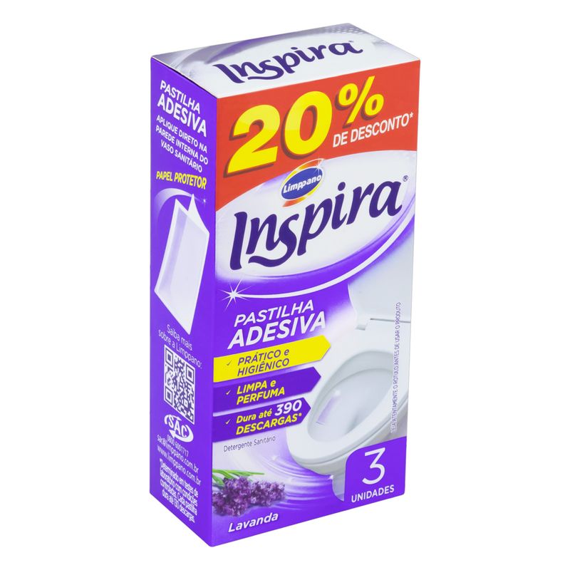 Além de sua função principal, a Pastilha Sanitária Inspira Lavanda também contribui para a manutenção do sistema de encanamento, ajudando a evitar obstruções. Sua formulação é segura para o uso em todos os tipos de vasos sanitários, tornando-a uma opção versátil e confiável. Com um design que se adapta facilmente ao seu banheiro, a pastilha é uma solução prática e eficiente para quem valoriza limpeza e bem-estar.
