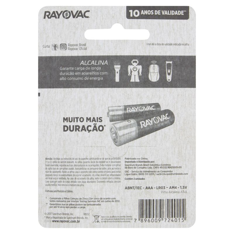 Pilha Rayovac Alcalina AAA C/2 – Energia Confiável para Seus Dispositivos