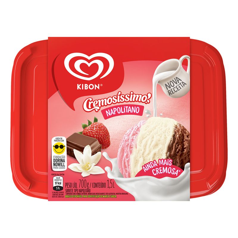 Sorvete Kibon Cremosíssimo Napolitano Pote 1.5l – Sabor e Textura Inigualáveis