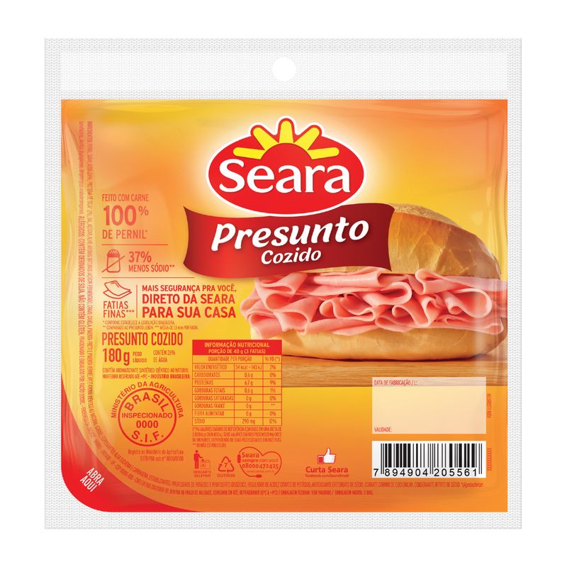 Presunto Suíno Seara Fatiado Resfriado 180g – Sabor e Praticidade na Sua Mesa