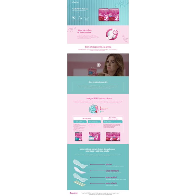 A Carefree é uma marca reconhecida por seu compromisso com a qualidade e a inovação em produtos de higiene íntima. Os protetores diários são testados dermatologicamente, garantindo que são seguros para todos os tipos de pele. A embalagem prática e fácil de abrir permite que você tenha acesso rápido ao produto, tornando a experiência ainda mais conveniente.