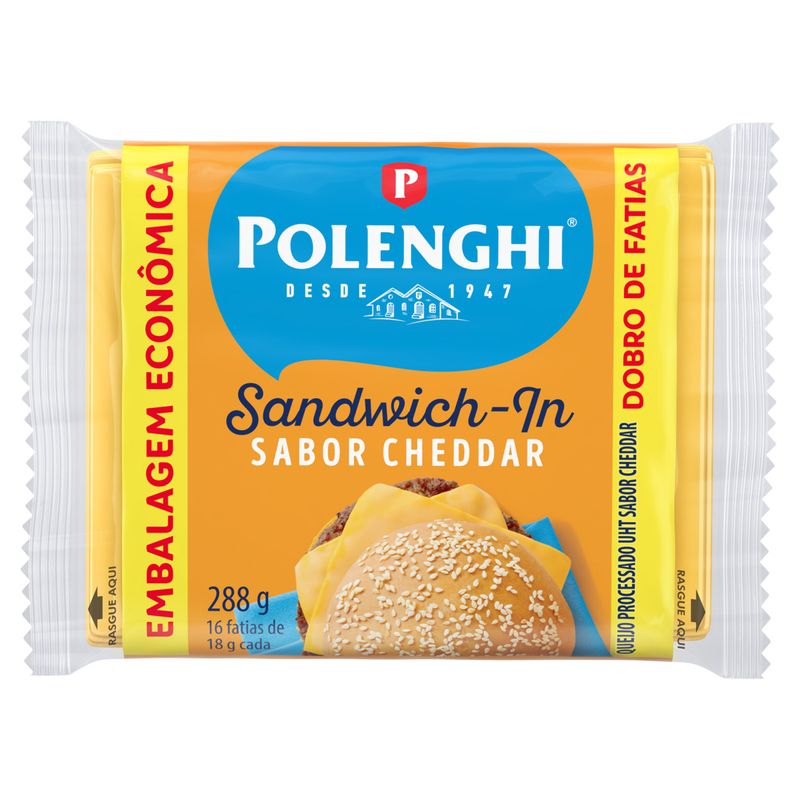 Queijo Processado Polenghi Sandwich-In Cheddar 288g – Sabor e Praticidade para Seus Lanches
