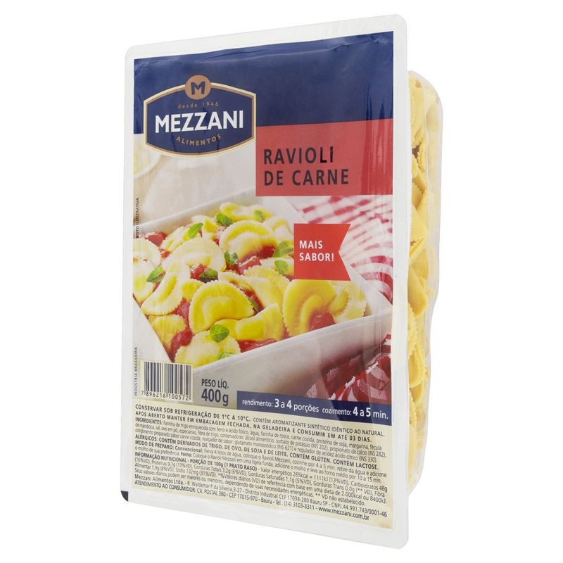 Produzido pela renomada marca Mezzani, o ravioli é feito com ingredientes selecionados, garantindo frescor e um sabor autêntico. A massa é leve e delicada, permitindo que o recheio de carne se destaque em cada garfada. A combinação perfeita entre a textura da massa e o recheio suculento transforma cada refeição em um momento especial.