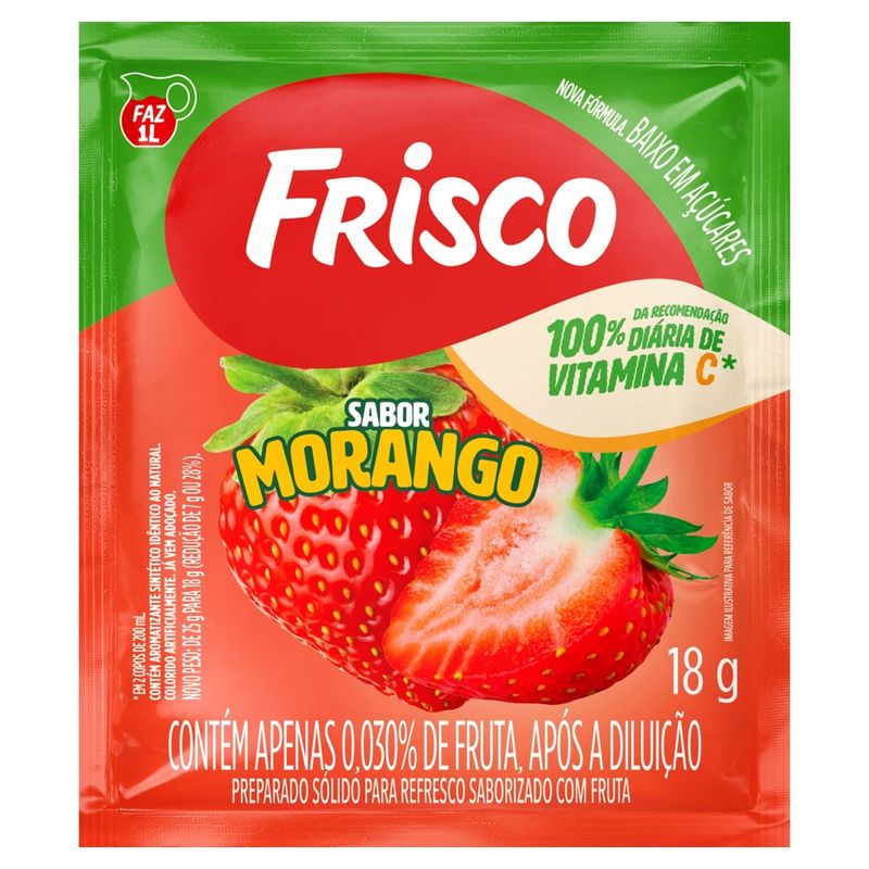 Refresco Em Pó Frisco Morango 18g – Sabor e Praticidade em Cada Copo