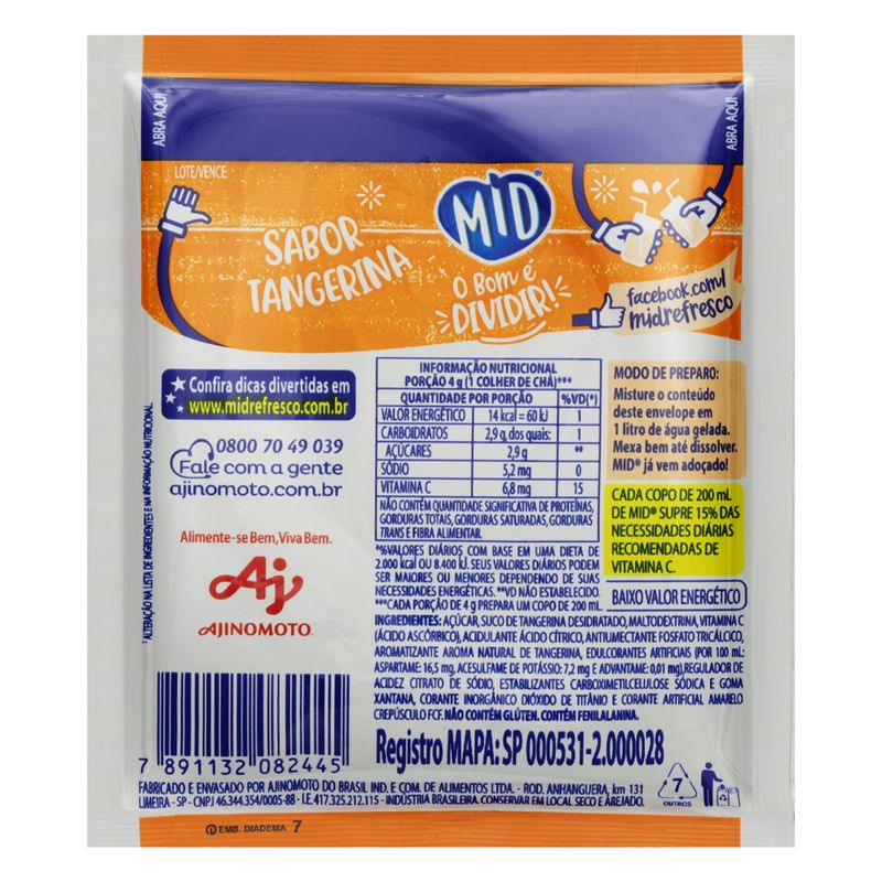 Se você está em busca de uma bebida prática, saborosa e que traga frescor ao seu dia, o Refresco em Pó Mid de Tangerina é a escolha ideal. Com sua facilidade de preparo e sabor irresistível, ele se tornará um item indispensável na sua casa. Experimente e descubra como é fácil e gostoso se refrescar com Mid!
