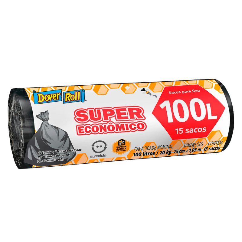 Saco P/ Lixo Dover Roll Super Econômico 100 Litros C/ 15 Unid – Praticidade e Eficiência para o Dia a Dia