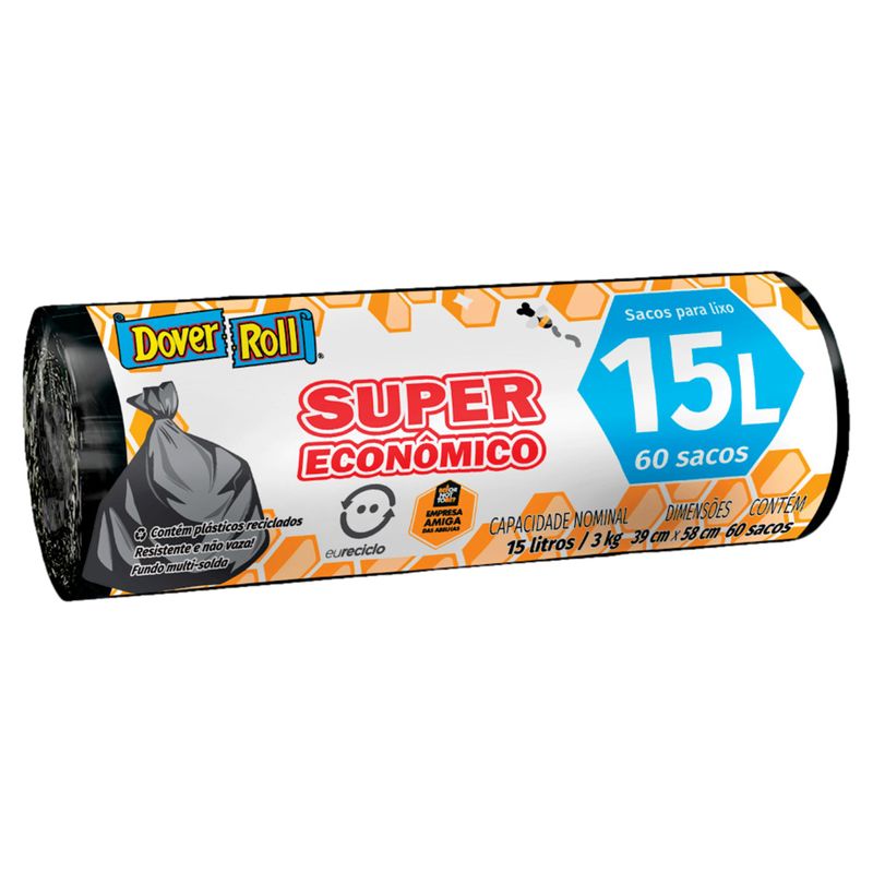 Saco P/ Lixo Dover Roll Super Econômico Preto 15 Litros C/ 60 Unid – Praticidade e Eficiência para o Dia a Dia