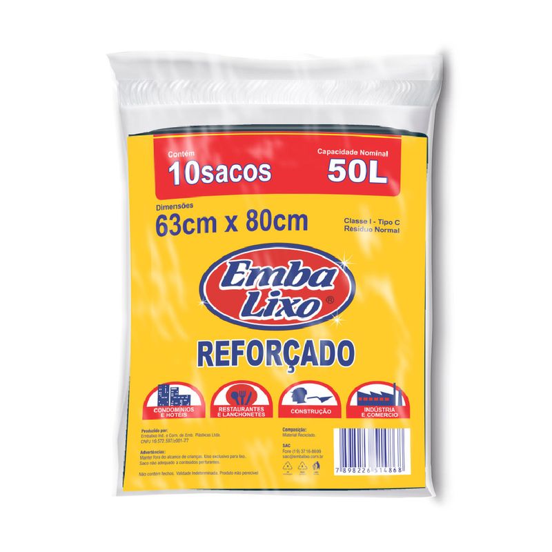 Os sacos de lixo Embalixo Almofada Reforçado de 50 litros são a solução ideal para quem busca praticidade, resistência e versatilidade no descarte de resíduos. Com 10 unidades por embalagem, você terá sempre à mão a quantidade necessária para manter seus espaços limpos e organizados. Escolha Embalixo e transforme a maneira como você lida com o lixo no seu dia a dia!