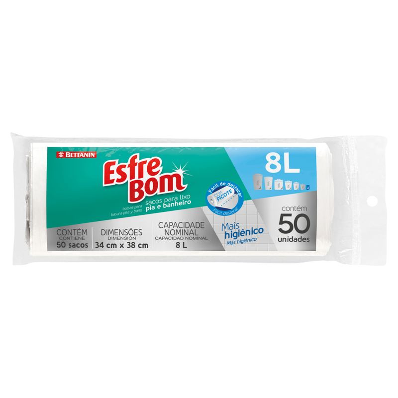 Saco P/Lixo Esfrebom Branco 8L para Pia e Banheiro – Praticidade e Limpeza no Seu Dia a Dia