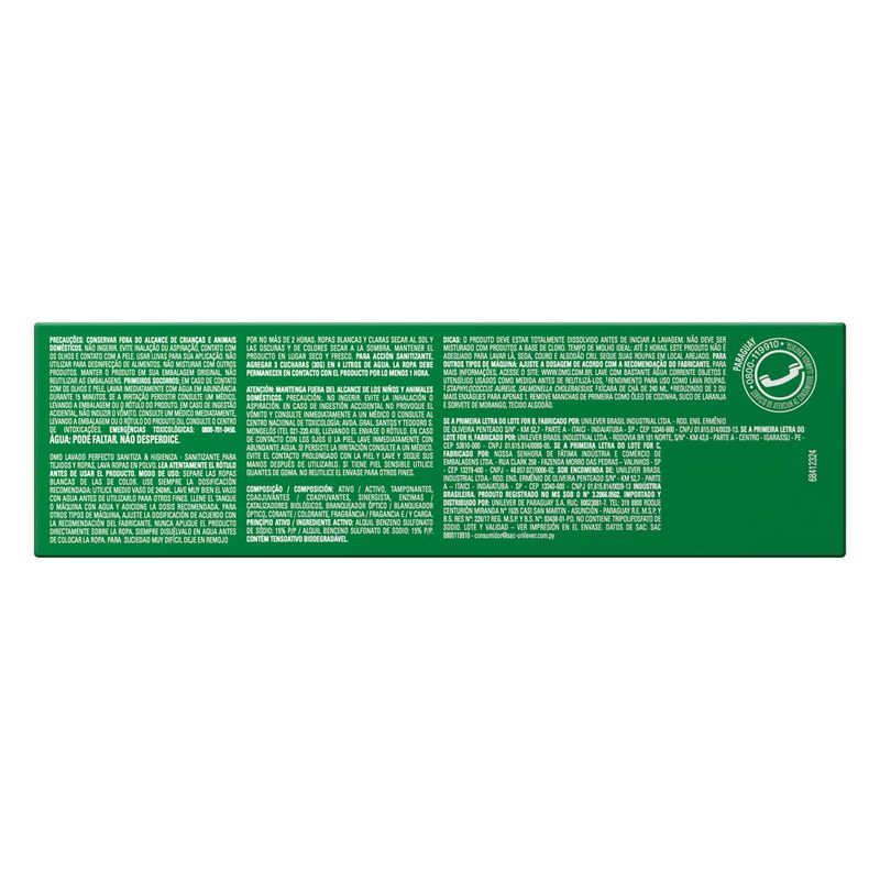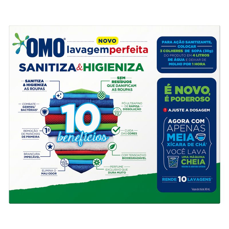 Com o Sanitizante para Roupas em Pó Omo Lavagem Perfeita, você garante que suas roupas fiquem limpas, frescas e protegidas. Experimente e descubra como é fácil manter suas peças sempre em ótimo estado, com a confiança que só a Omo pode oferecer.
