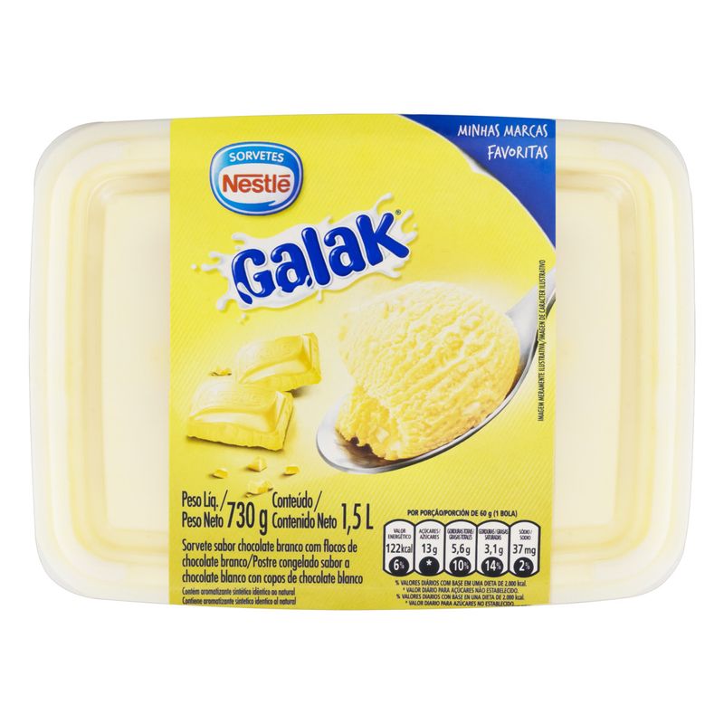 Produzido com ingredientes selecionados, o Sorvete Galak traz a qualidade que a marca Nestlé representa. O chocolate branco, que é a estrela deste produto, proporciona um sabor doce e delicado, que se destaca em cada colherada. Além disso, a cremosidade do sorvete é resultado de um processo cuidadoso de fabricação, garantindo que cada porção seja uma verdadeira indulgência.