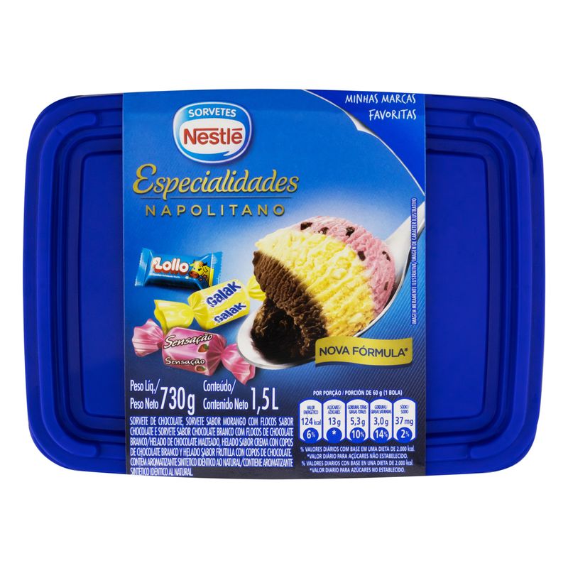 Sorvete Nestlé Napolitano 1.5 Litros – Sabor e Tradição em Cada Colher