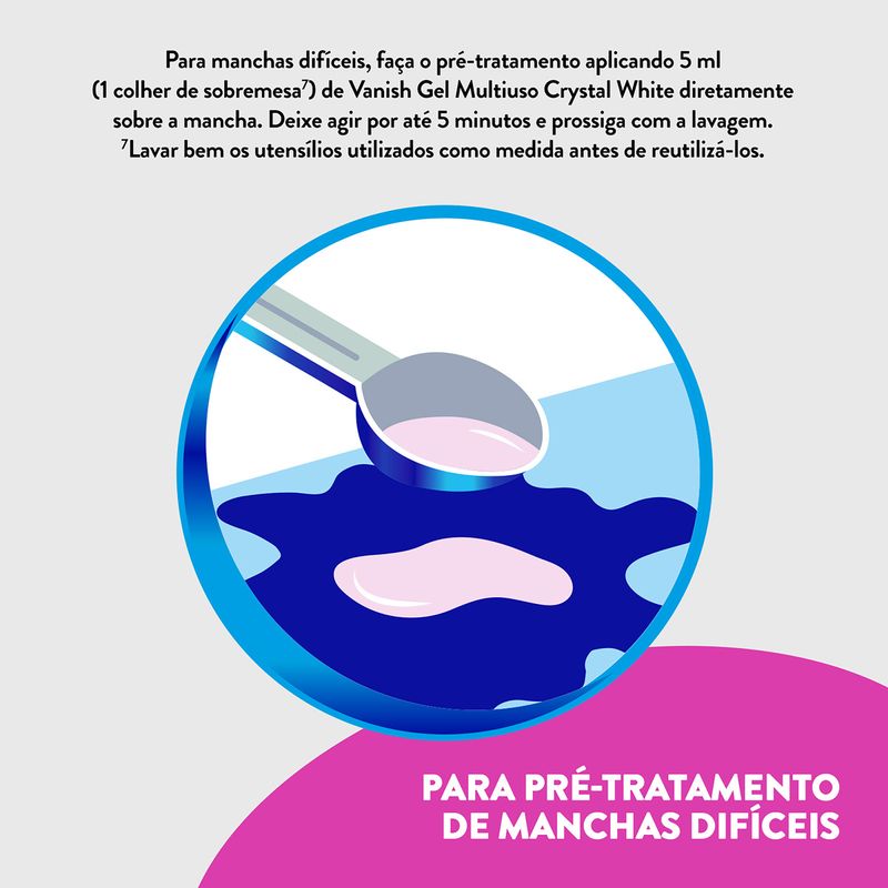 Com o Tira Manchas Vanish Líquido Crystal White, você tem a garantia de um produto que combina eficácia, praticidade e cuidado, tornando a tarefa de manter suas roupas brancas muito mais fácil e eficiente.