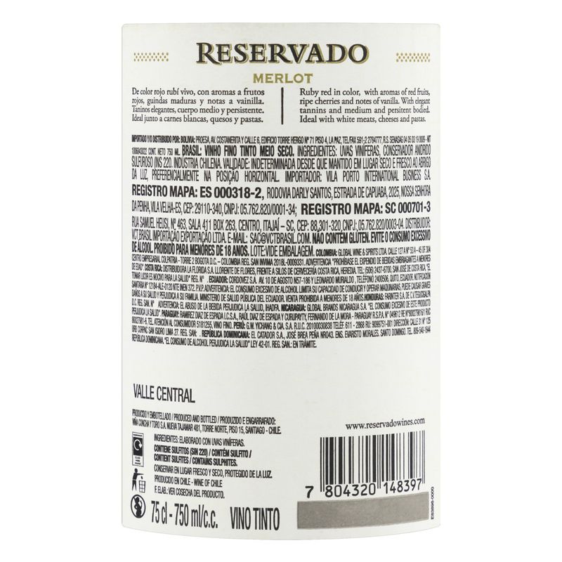 Vinho Chileno Concha Y Toro Reservado Merlot Tinto 750ml – Sabor e Tradição em Cada Gole